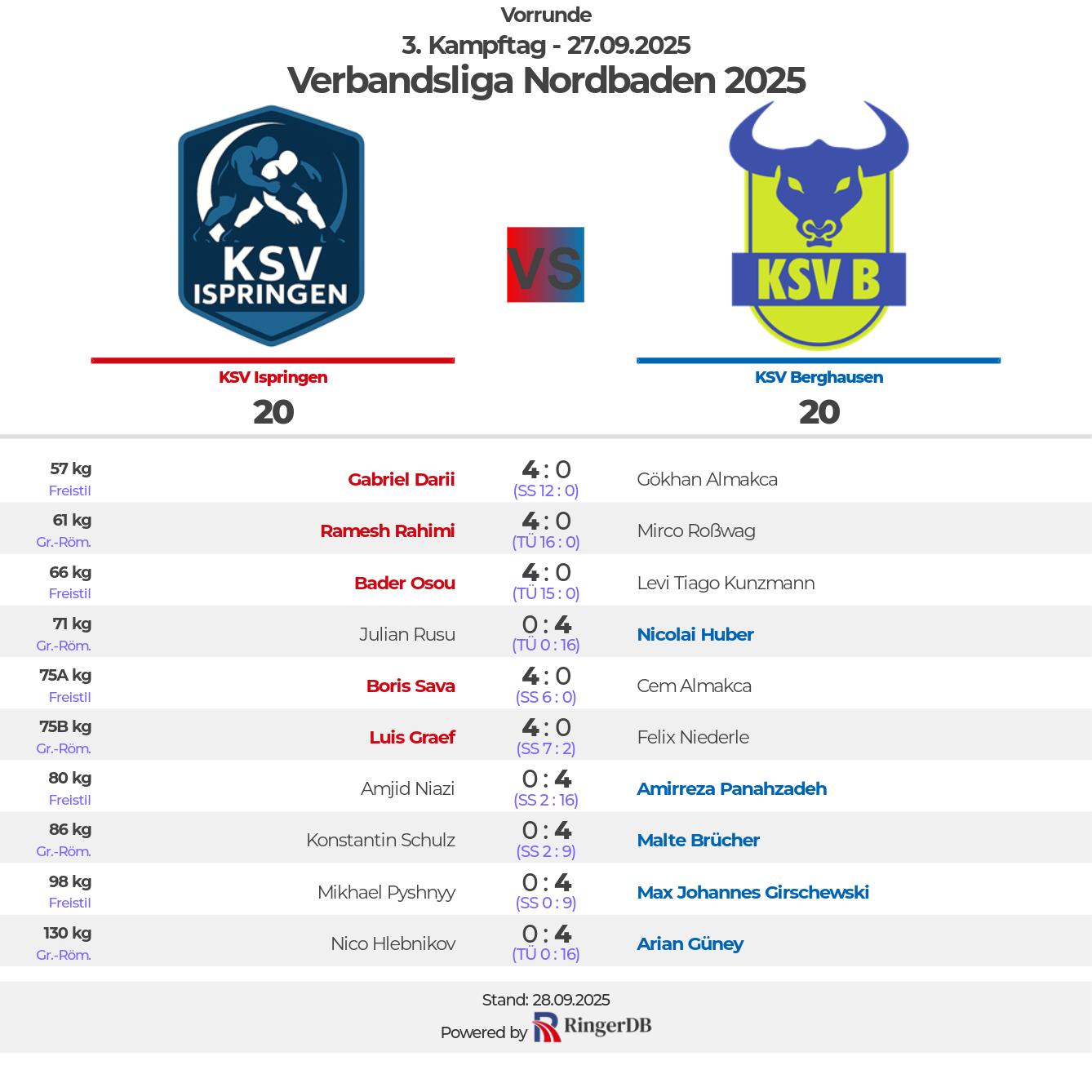 Vor dem Kampf in Ispringen war man sich wohl einig, dass ein Punktgewinn dort ein Erfolg wäre, zumal krankheitsbedingt einige Leistungsträger fehlten. So musste man im Vergleich zu den beiden Saisonauftaktsiegen, auf die bisher ungeschlagenen Marcel Schulze, Marco Junge und Robin Banghard verzichten.