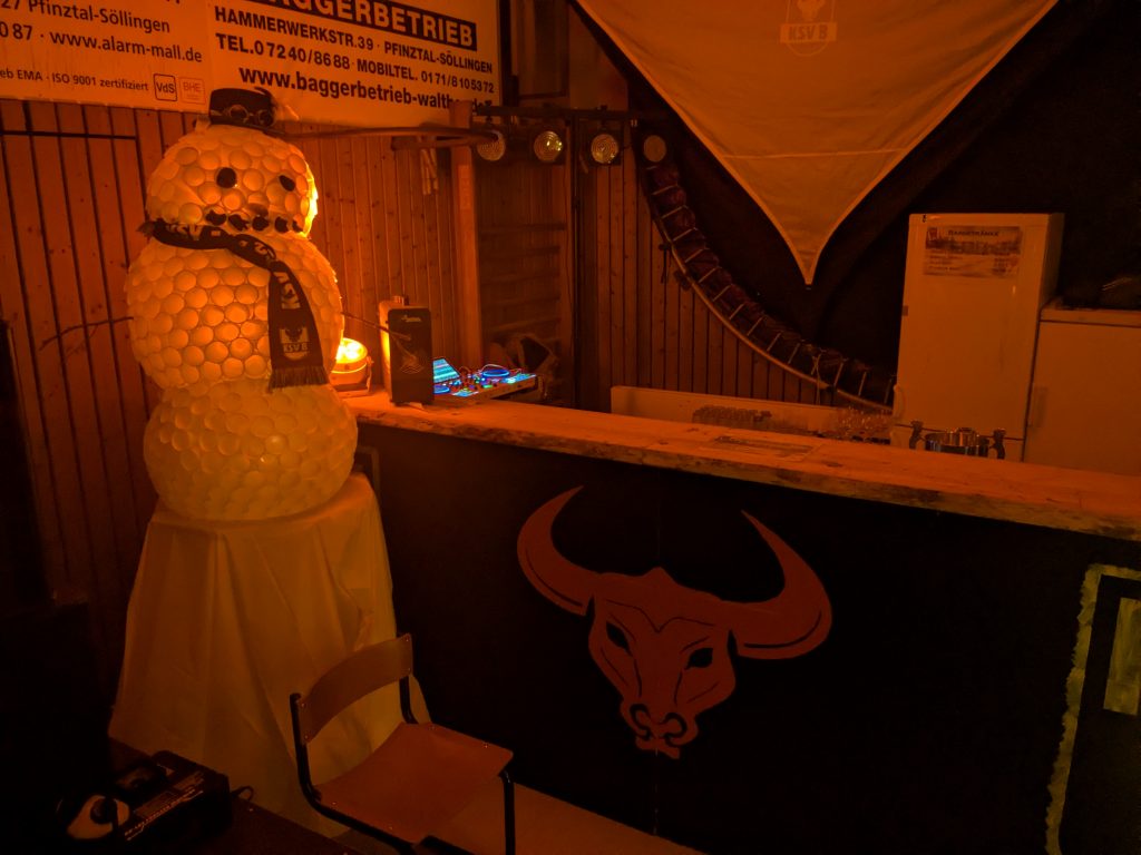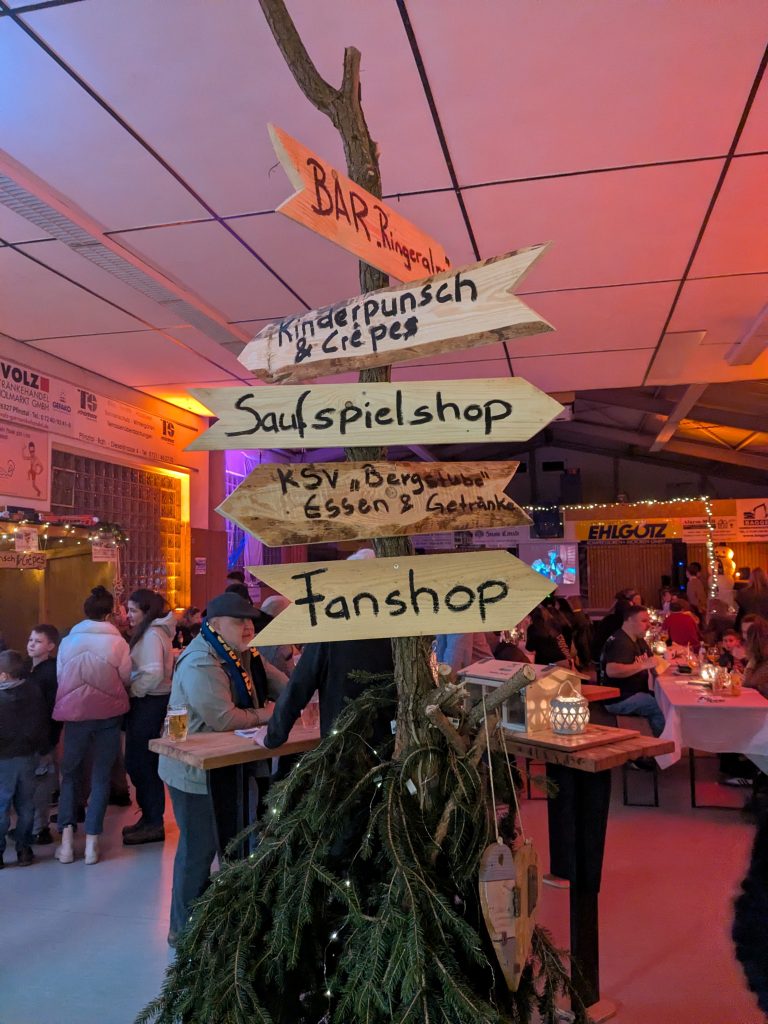 In eine stimmungsvolle Winterlandschaft verwandelte sich die Ringerhalle des KSV Berghausen bei der diesjährigen Winterfeier. Dank der von der Gemeinde zur Verfügung gestellten Buden entstand ein kleiner Wintermarkt mit liebevoller Dekoration und vielen wunderbaren Details. In den Buden wurde für das leibliche Wohl gesorgt und beim Saufspiel-Fanshop konnte KSV-Merchandise erworben, sowie vor Ort Schlüsselanhänger oder Flaschenöffner selbst gestaltet werden.
